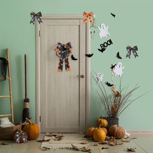 2 Rolls 12 Yards Wired Edge Ribbon - Skull Pumpkin Halloween Decorative Spider Web Printed Wrapping Ribbon for Party Wreath DIY Craft Floral Bow