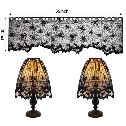 2 Pieces Halloween Lamp Shade Cover Black Lace Spider Web Lampshades Cover Topper Decoration with 60 Pieces 3D Bat Stickers for Halloween Party Indoor Decor