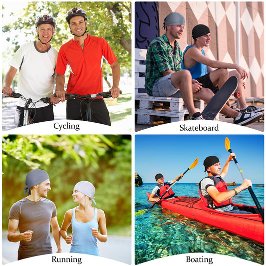 6 Pieces Do Rags Sweat Wicking Beanie Cooling Durags Skull Cap Motorcycle Head Wrap Bandana for Men Women (Black, White, Gray,Simple Style)