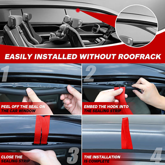 6 Rooftop Cargo Tie Down Hook Straps-Secure Any Car Roof Bag, Roof Rack Cargo Carrier,or Car Top Carrier,Durable and Solid, No Roof Rack Required, Compatible with Most Cars - Registered Patent (red)