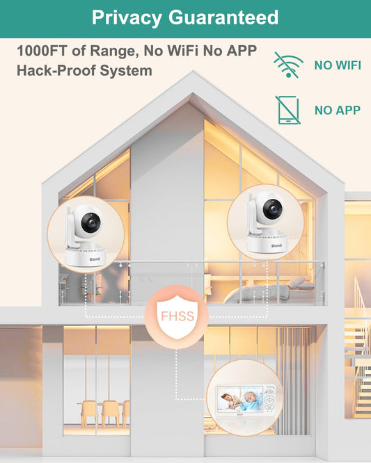 6" Baby Monitor with 2 Cameras and Audio 30 Hours Battery Upgrade Split Screen Video Baby Monitor Remote Pan-Tilt-Zoom 178°Wide-Angle 150 Languages No WiFi ECO 2-Way Talk Night Vision 1000ft Travel