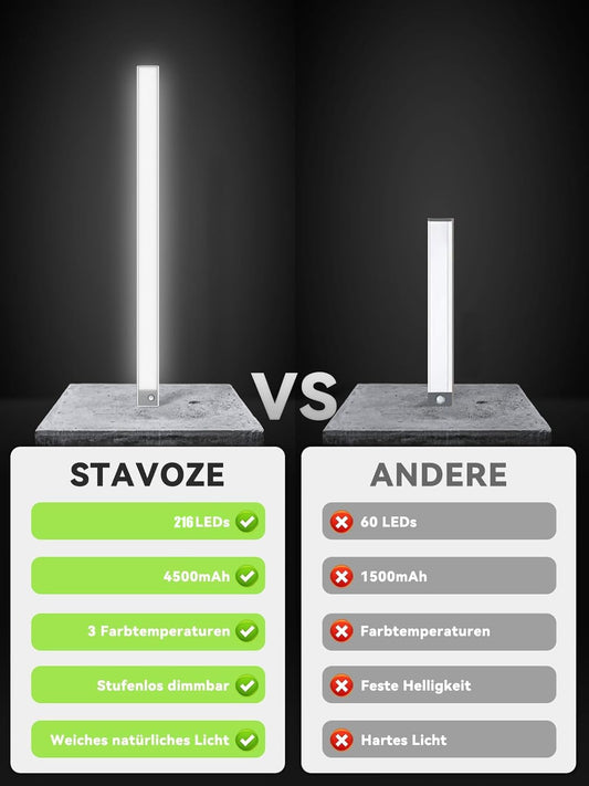 60 cm Under-Unit Light Kitchen LED Dimmable, 216 LEDs Cabinet Lighting with Motion Sensor, 4500 mAh Rechargeable Lighting LED Strip, 3 Colour Modes, Magnetic LED Strip for Cupboard, Wardrobe