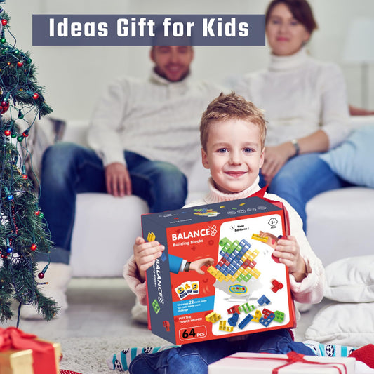 64 Pcs Tetra Tower Stack Game, Team Tower Tumble Giant Stacking Game, Balance Stacking Blocks Game for Kids Ages 6-12 & Adults, Family Party Board Games, Educational STEM Toys (2-4 Players)