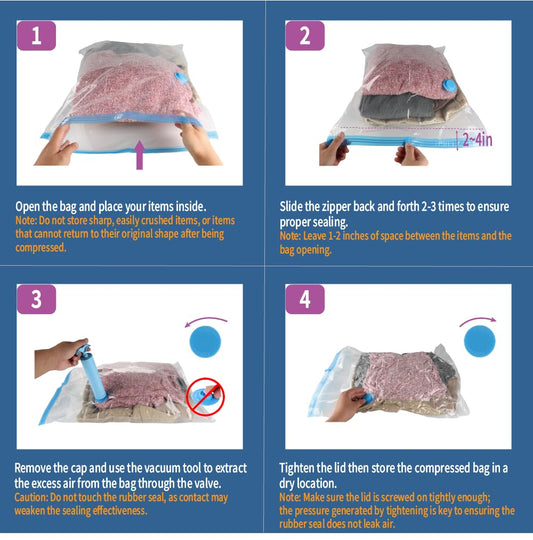 7 Pack Small Space Saver Vacuum Storage Bags for Clothing Travel, Vacuum Seal Compression Bags for Clothes, Packing, Luggage, Blankets, Comforters and Pillows, Hand Pump Included