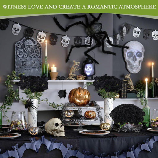 Hananona Black Artificial Roses for Flower Arrangement, 12 Pcs Silk Black Roses Bouquet for Halloween Home Decoration, Faux Black Roses for Halloween and Gothic Decoration