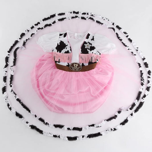 HAPNBCELE Pink Cowgirl Costume for Girls Cow Outfits with Hat Halloween Cosplay (Pink, 11-12 Years)
