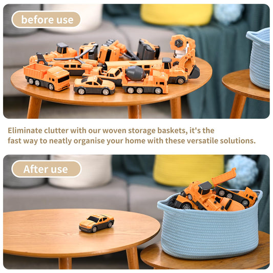 Happyiren Cute Woven Storage Basket with Handle, Baskets for Gifts Empty, Gift Baskets for Birthday Baby Shower Raffle Burr Fundraiser, Decorative Organizer Box for Baby Toy Pet, 13" D x 8" W x 6" H