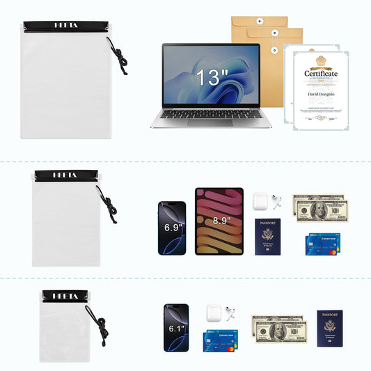 HEETA 5-Pack Clear Waterproof Dry Bag, Water Tight Cases Pouch Dry Bags for Camera Mobile Phone Maps, Kayaking Boating Document Holder (Black)
