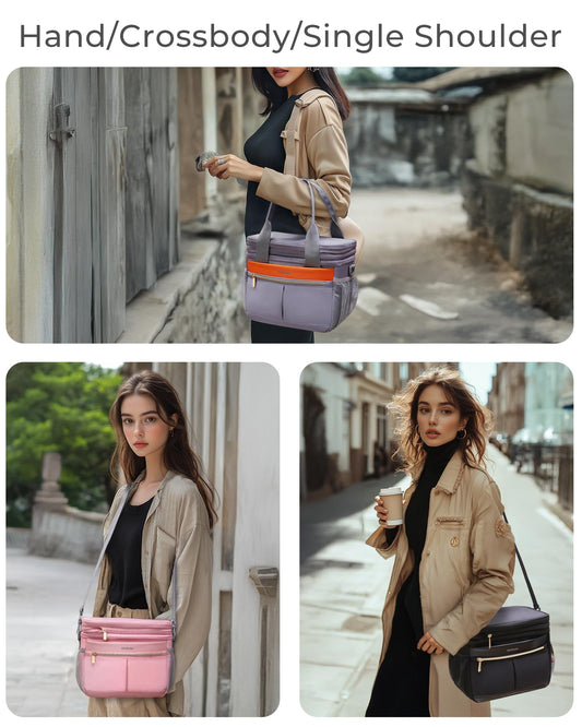 Hedcaw Lunch Box for Women Double Deck Insulated Lunch Bag Women Expandable Leakproof Reusable Lunch Cooler Bag for Work, Office, Picnic, Purple