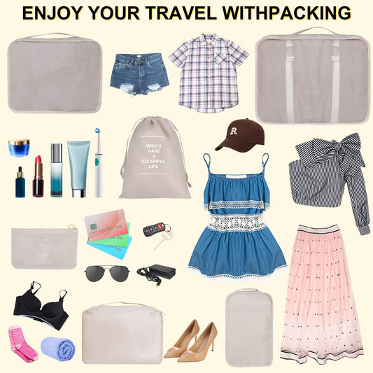8 Set Packing Cubes for Suitcases, Packing Cube for Shoes, Cosmetics, Clothing and Accessories, Packing Cubes for Travel Luggage Organizer Women Men(Beige)