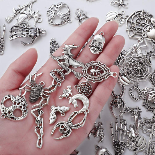 Hicarer 80 Pieces Antique Silver Pendants Charms Pendants Halloween Jewelry Making Accessory for DIY Necklace Bracelet(Skull)