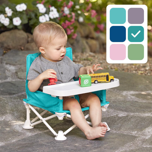 Hiccapop OmniBoost Travel Booster Seat with Tray for Baby, Dining Table, Camping, Beach, Grandma’s | Folding Portable Tip-Free Design Straps to Kitchen Chairs