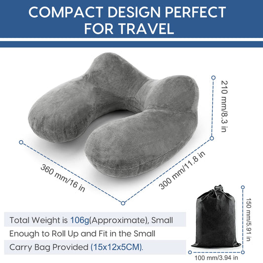 HITSZS Inflatable Travel Pillow for Airplane Inflatable Neck Pillow for Traveling with Soft Velvet Washable Cover for Sleeping, Airplane,Train, Car, Office, Contoured Eye Masks, Earplugs