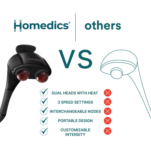 Homedics Handheld Back Massager, Dual Heated Nodes, Neck, and Body Percussion Massager with Interchangeable Nodes to Release Back, Neck, Shoulder Leg and Foot Tension