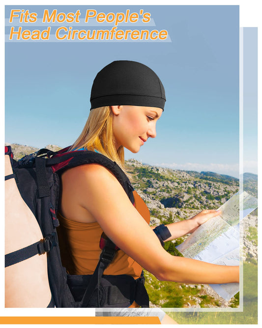 9 Pcs Cooling Skull Cap Camo Liner Sweat Wicking Cap Lightweight Cycling Cap Running Head Cap for Men Women (Black)