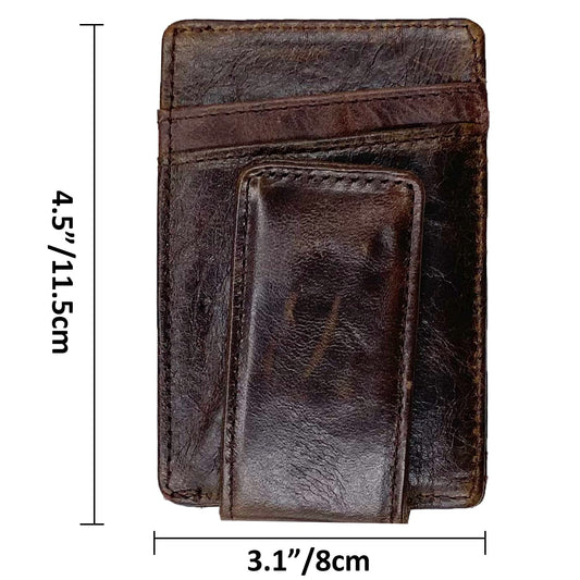 HOPSOOKEN Money Clip RFID Front Pocket Wallet Men Leather Slim Minimalist Wallet (Deep Coffee)