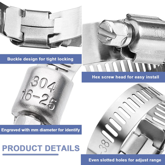 Hose Clamp- Qibaok 120 PCS Stainless Steel Hose Clamps Assortment Kit 1/4''–1-1/2'' Worm Gear Clamps for Fuel Line, Plumbing, Automotive, Mechanical Applications, Pipe, Tube, Radiator, Garden