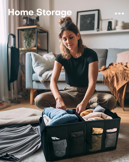 HOTOR Trunk Organizer - Car Organizer, Foldable Trunk organizer for SUVs & Sedans, Sturdy Car Organization for Car Accessories, Tools, Sundries, Black, 2 Compartments, 21.3"×12.6"×10.6"