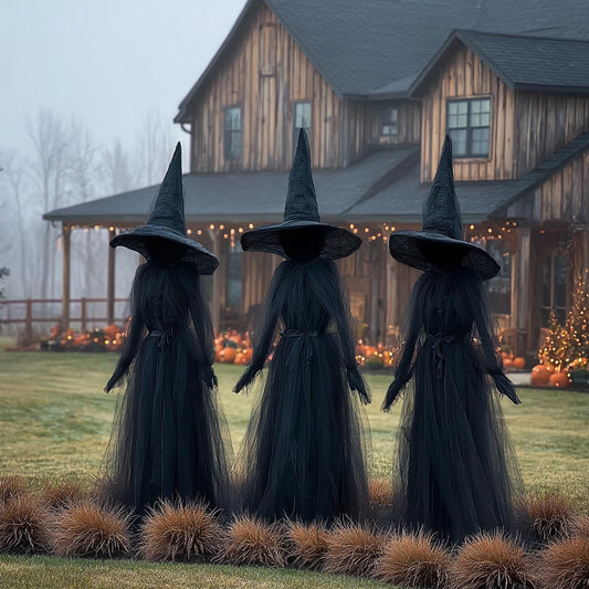 Hourleey Halloween Decorations Outdoor, 3 Pack 5 FT Holding Hands Lighted Witches Stakes with Glowing Face, Halloween Witch Decor for Yard Garden Lawn Porch Haunted House Party Props