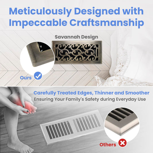 Howeall 4x10 Inches Heavy Duty Walkable Floor Register - Easy Adjust Air Supply Lever Decorative Floor Vent Covers - Savannah Design Vent Covers for Home - Antique Brass