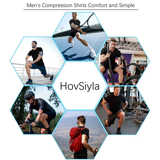 HovSiyla 5 Pack Men's Compression Shirts Cool Dry Short Sleeve Baselayer Athletic Workout T Shirts Black-L