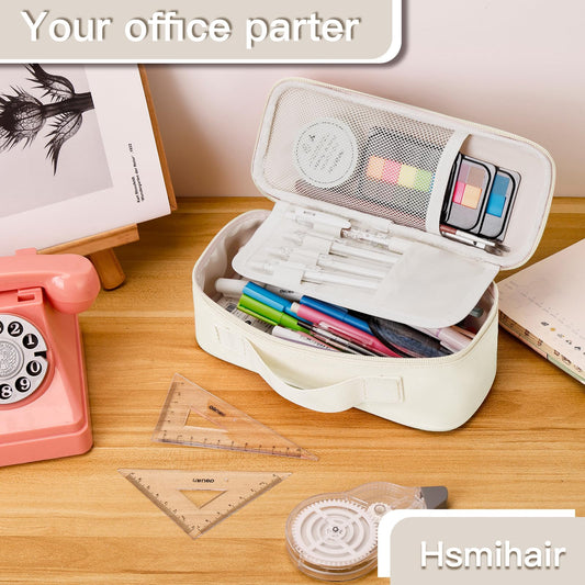 Hsmihair Big Capacity Pencil case pencil Bag Multifunctional Pencil Pouch with Compartmens, pencil box for girls boys Stationery Bag Pencil case Pouch Cosmetic 2100ML (White)
