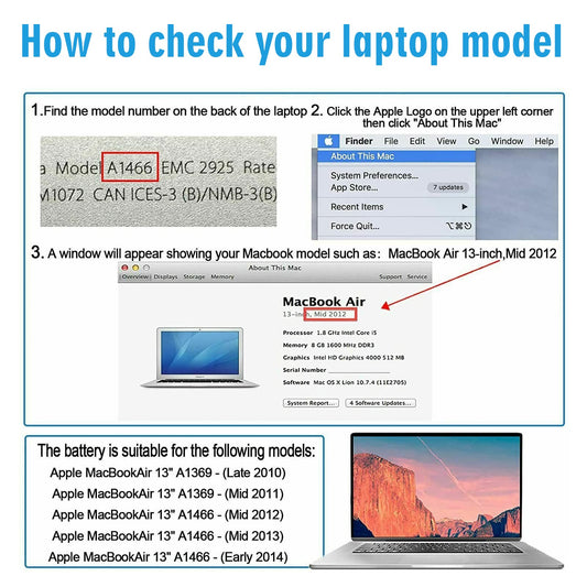 A1405 A1466 Laptop Battery for MacBook Air 13 inch A1466 (Mid 2012,Mid 2013,Early 2014, Early 2015,2017) A1369(Late 2010,Mid 2011 Version) fits A1496 A1377 (EMC :2925, 2469, 2559, 2392) [Upgraded 3.0]
