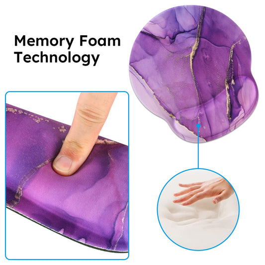iCasso Purple Ergonomic Gaming Mouse Pad with Wrist Support, 4in1 XXL Large Desk Mat - Keyboard Wrist Rest + Mouse Wrist Rest + Coaster, Marble Style Desk Pad Mousepad