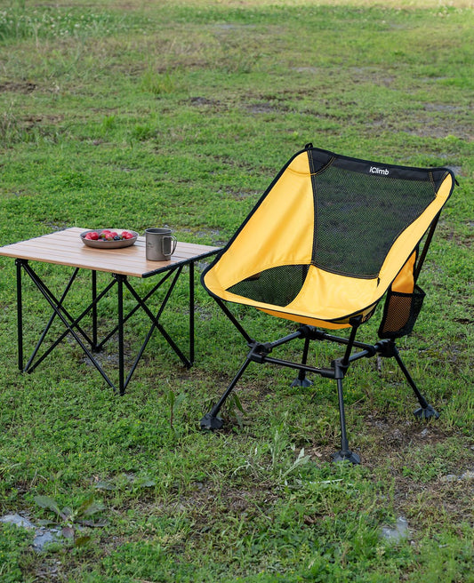 iClimb Ultralight Compact Camping Folding Beach Chair with Anti-Sinking Large Feet and Back Support Webbing (Yellow - Square Frame)