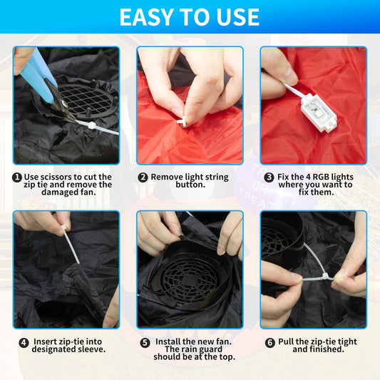 Inflatable Replacement Fan Blower, Mini Air Blower with 4 LED Light,3100(r/min) Waterproof Fan Blower Motor for 3-9FT Halloween Christmas Easter Yard Inflatable Decorations