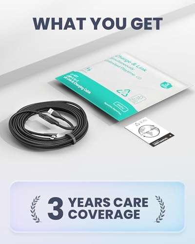 INIU Link Cable with Charging [16ft] for Meta Quest 3s Oculus Quest 3 Quest 2/Pro, Pico 4, PC VR, Steam VR, USB 3.0 High Speed Data Cable, USB C Charger Cord for VR Headset Accessories