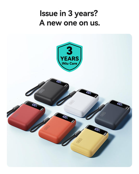 INIU 45W Power Bank, Slimmest 10000mAh Portable Charger with Build in USB-C Cable, Fast Charging USB C in&Out Battery Pack, Travel External Phone Charger for iPhone 16 15 Samsung S24 S23 Google etc
