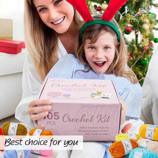 INSCRAFT Crochet Kit for Beginners Adults, 30 Acrylic Yarn Skeins 1650 Yards Yarn, 105 PCS Crochet Kit with Hooks Yarn Set,includes Canvas Tote Bag, Ideal Starter Pack for Kids Professionals
