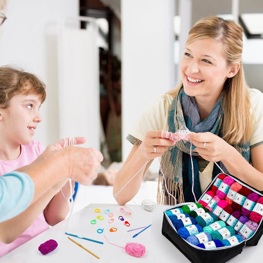Inscraft 52 Acrylic Yarn Skeins, 1820 Yards 52 Colors, 2 Crochet Hooks, 2 Weaving Needles, 10 Stitch Markers, 1 Bag, for Crocheting & Knitting, Gift Beginners and Adults