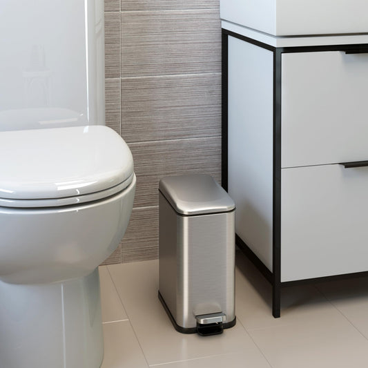 iTouchless SoftStep 1.3 Gallon Slim Bathroom Step Trash Can with Odor Filter & Removable Inner Bucket, Stainless Steel, 5 Liter Garbage Bin for Bathroom, Bedroom, Business, Home Office Cubicle