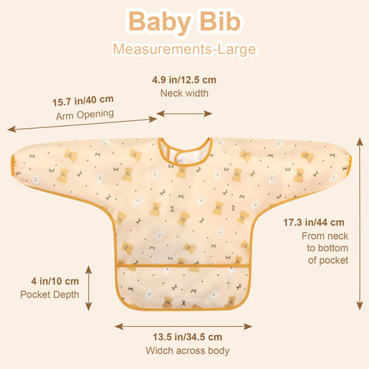 Accmor 4 Pack Long Sleeve Bibs, Baby Smock Waterproof Sleeved Bib Smock for Baby Toddler 6-24 Months