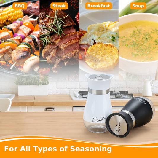 Accmor Salt and Pepper Shakers Set, 4 oz Stainless Steel Salt Pepper Shaker Containers with Glass Bottom for Kitchen Cooking, BBQ, Bar, Table, RV, Camp