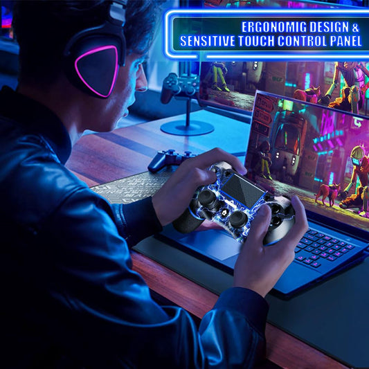 AceGamer 2 Pack for PS4 Controller, Wireless Controllers for PS4/Pro/Slim/PC, with Non-Slip Grip of Both Sides and 2 USB-C Cable! (Midnight Black * 2)