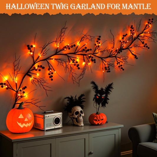 3 Color Changing Lights -6 Ft 54LED Halloween Willow Vine Twig Decor Branches Garland Decorations Orange,Purple and Orange & Purple Lights -Battery Operated for Indoor Wall Fireplace Halloween Decor
