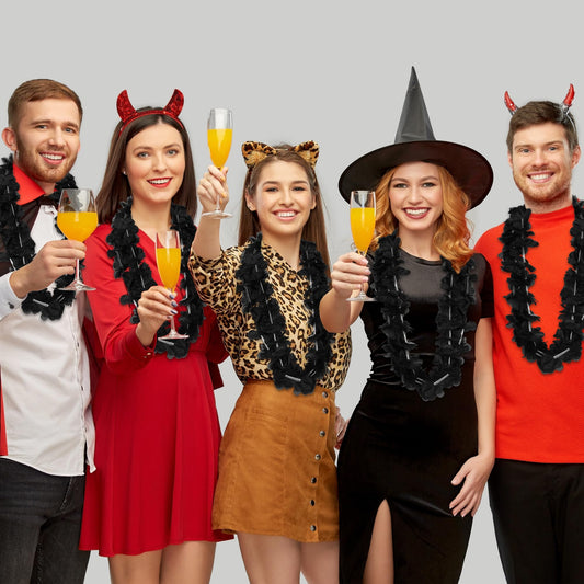 24pcs Halloween Leis Decor, Halloween Black Leis Bulk Accessories Silk Flower Necklace, Black Hawaiian Bulk Hula Dance Party Decor, Flower Leis Trick or Treating Activities Favors Supplies
