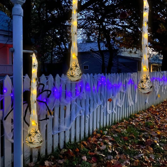 3 Packs Halloween Hanging Ghosts Decorations Outdoor Indoor, Spooky Glowing Ghost Witch Hat Striped Stockings High Heels String Lights 3 Modes Patio Yard Front Porch Tree Party(Contains 18 Batteries)