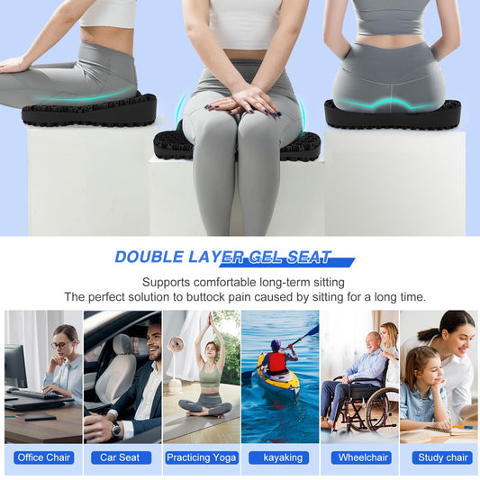 Airllantry Thicken 19.7in Seat Cushion, Gel Seat Cushion for Long Sitting–Office Chair, Wheelchair, Car Cushion, Large Cooling Pad for Back Pain, Sciatica, Tailbone Pain Relief