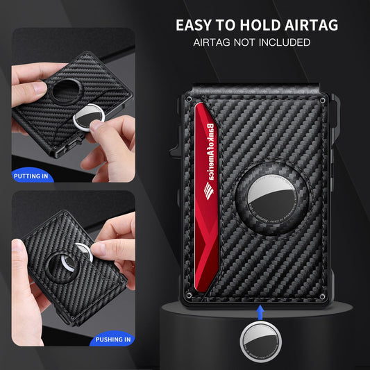 Airtag Wallet for Men, Mens Smart Wallet for Air Tag RFID Blocking, Minimalist Bifold Pop Up Aluminum Credit Card Case Holder 12+ Cards with ID Window, Gift for Men, No Airtag Included, Carbon Fiber