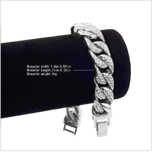 Aiyo Nice Mens Womens Cuban Link Bracelet Hip Hop Bracelet Stainless Steel Chain Bracelet Iced Out Curb Cuban 18k Gold Plated Bracelet With Clear Rhinestones (A-Silver)