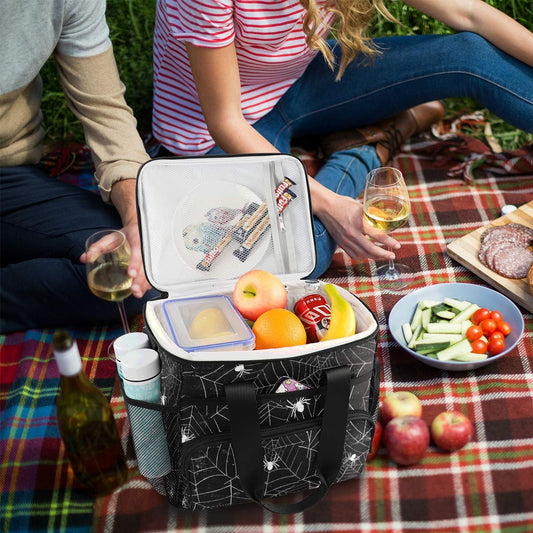 ALAZA Halloween Black and White Grunge Background with Spiderwebs Large Capacity Cooler Tote Insulated Lunch Bag Lunch Cooler Bag