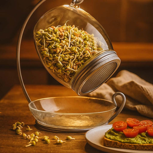 ALCEDIA Premium Sprouting Jar Kit - Unique 30 oz Wide Mouth Sprouting Jar, Stand, Tray and 316 Stainless Screen Lid | Decorative Indoor Seed Sprouter and Germinator (1 Kit)