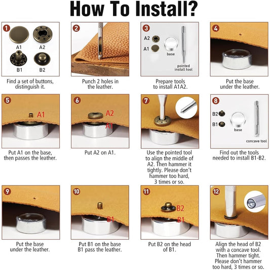 Alritz 120 Set Leather Snap Fasteners Kit, 12.5mm Metal Button Snaps Press Studs with 4 Setter Tools, 6 Colors Leather Snaps for Clothes, Jackets, Jeans Wears, Bracelets, Bags