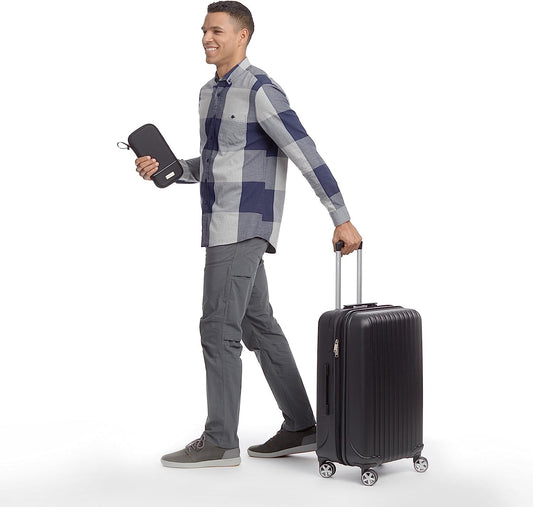 Amazon Basics RFID-blocking Passport Wallet, Passport Holder for Travel, 100% Nylon Material with Durable Zipper Closure, Zippered Pockets, Slots for Cards, 10"x5", Black, Solid
