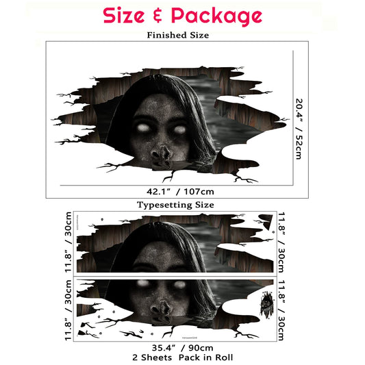 3D Halloween Floor Wall Stickers Scary Home Decorations for Bar Pub, Horror Zombie Ghost Floor Ceilings Removable Halloween Decor Wallpaper for Bar Pub Party Supplies