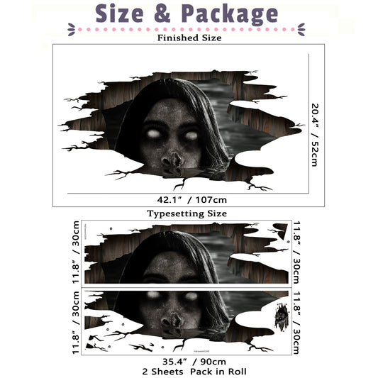 3D Wall Stickers, Removable Wall Decals - Scary Halloween Decor for Bedroom & Windows - 17
